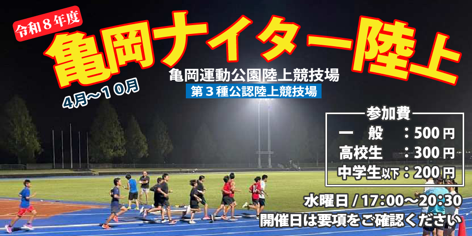 知らせ"令和8年度亀岡ナイター陸上"の"実施要項"をアップしました。